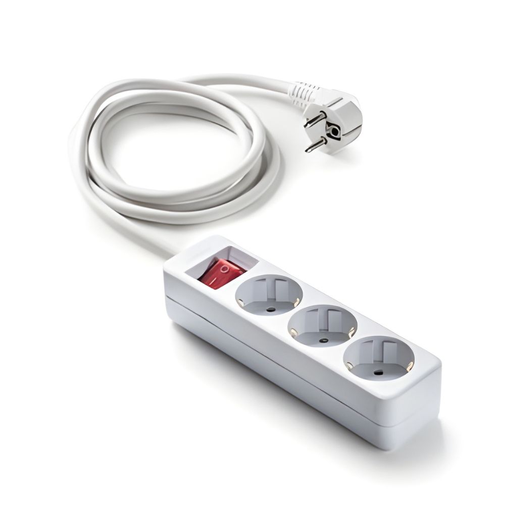 Base múltiple 3 tomas TT Lateral 16A/250V~ con interruptor. Blanco.